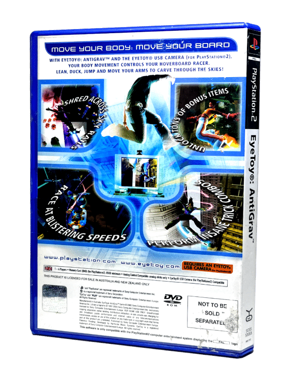 From the creators of Frequency, Amplitude and Karaoke Revolution comes EyeToy: AntiGrav – a game that implements the EyeToy technology in a completely new way through hoverboard gameplay.