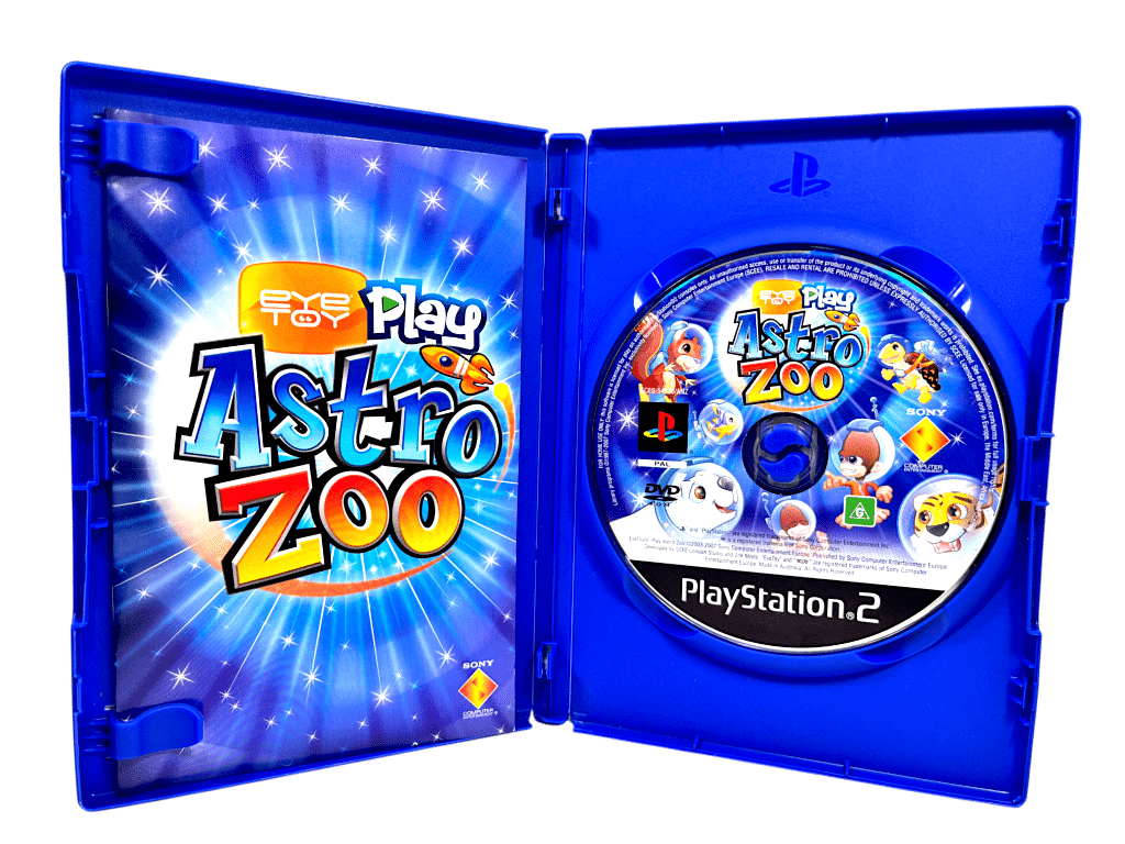 Excellent condition: EyeToy Astro Zoo for SONY PlayStation 2 / PS2. This preowned game disc is in Excellent Condition and includes case + cover. Case has a small plastic chip on the corner, but this is purely cosmetic, and each of the internal contents are fantastic. Please note that the MANUAL IS NOT INCLUDED in this listing, but the game is self-explanatory, and the instructions are readily available online.