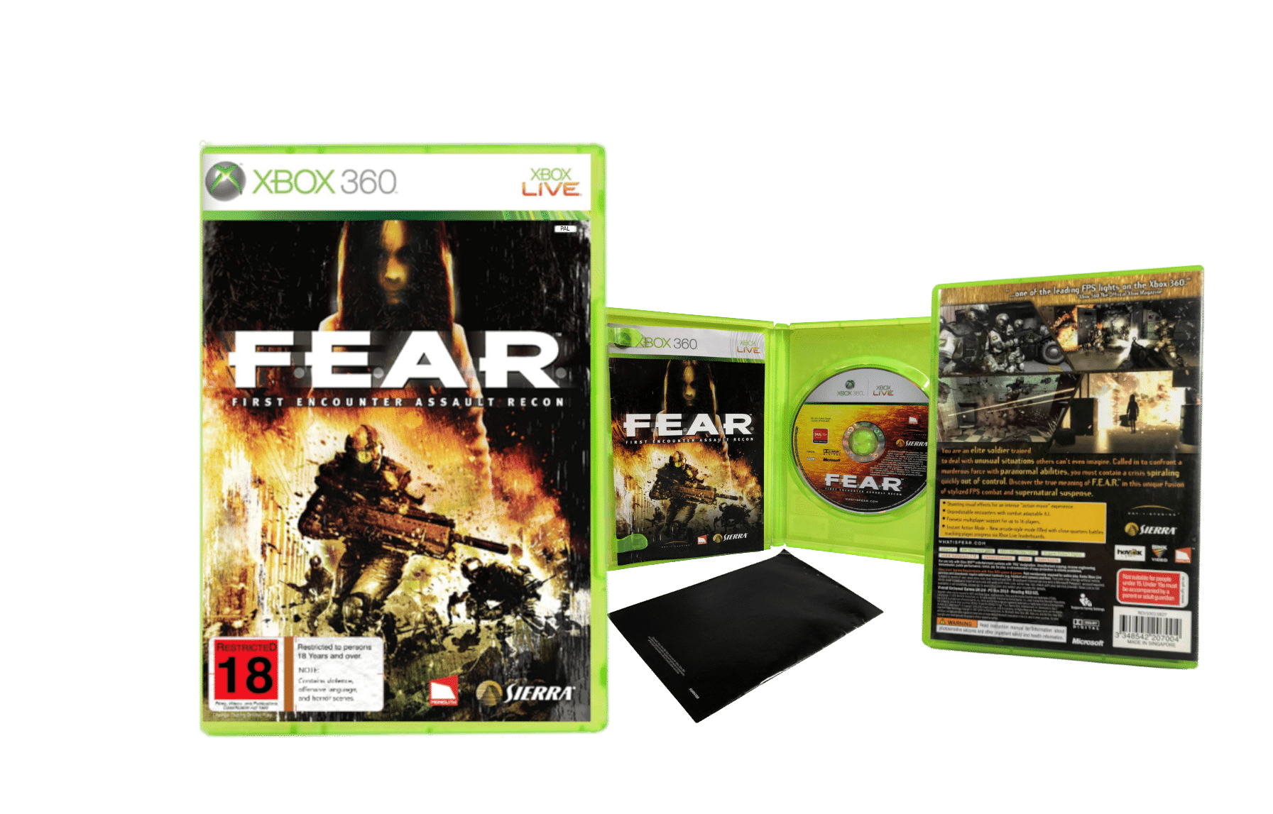 RARE & collectible XBox 360 game in excellent condition & 100% complete with contents: F.E.A.R. FIRST ENCOUNTER ASSAULT RECON (FEAR) for Xbox 360. This preowned game is in superb condition and comes complete with case, cover, manual / booklet, and game disc. A tidy and complete collector’s item.