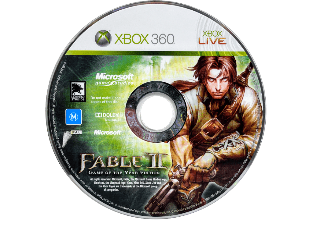 Rare and Popular Medievil Roleplaying game for BOTH XBox 360 AND Xbox One: Fable 2 GAME OF THE YEAR EDITION / Fable II GOTY. This preowned game disc is in good condition with light markings only. Disc comes inside EB Games case (not original case).