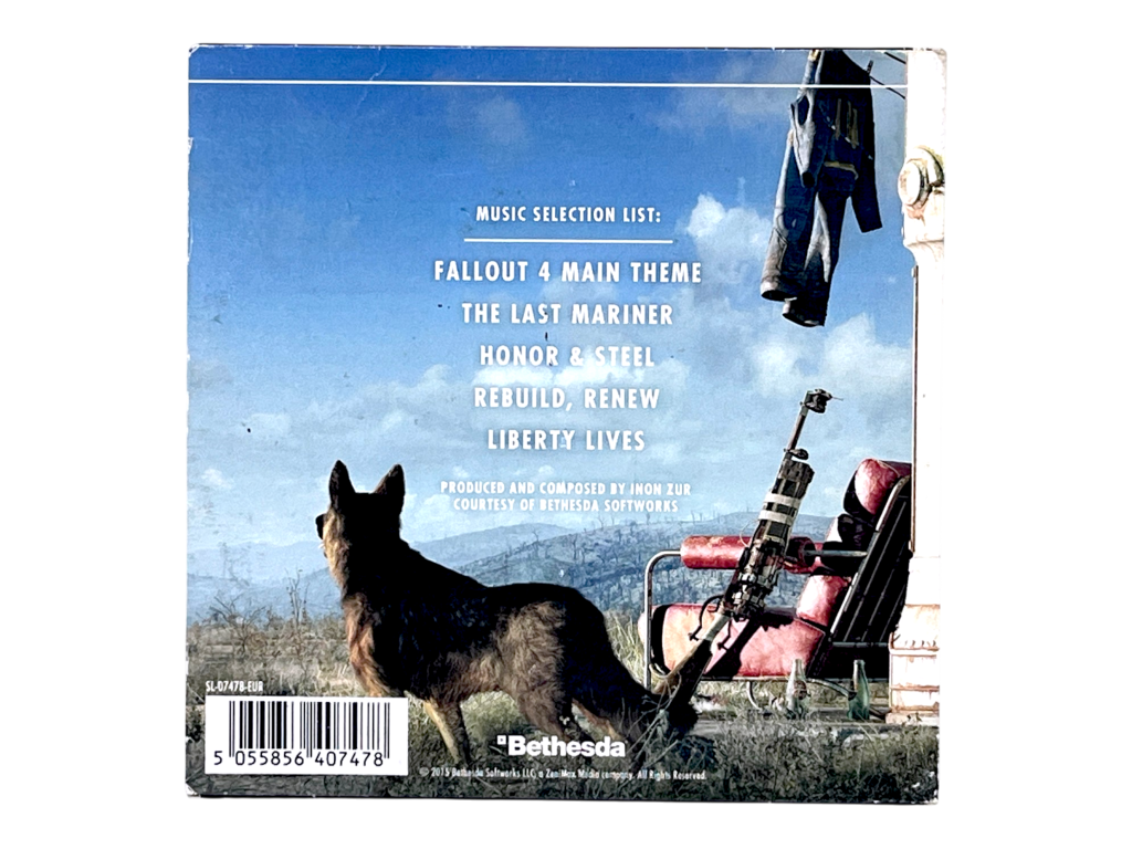 Fallout 4 – Featured Music Selections Soundtrack CD. This pre-owned, official Fallout 4 collectible soundtrack disc is in excellent condition and comes complete with its original matching cardboard sleeve envelope. The envelope has some very minor shelfware but still displays fantastically. Refer photographs.