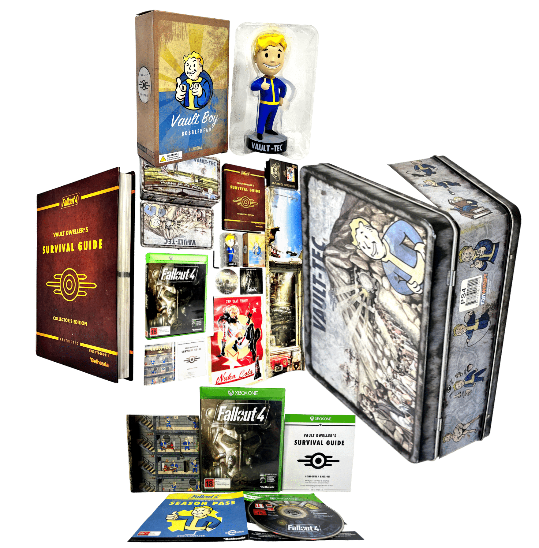 LARGE Collector’s Tin Edition in excellent condition & complete with inner contents: FALLOUT 4 BIG BOX (Steel TIN) Collector’s Edition for XBOX ONE. This preowned limited collector’s release is in superb condition as pictured, with all contents visible in slideshow.