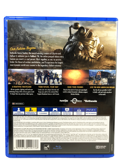Bethesda Game Studios, the award-winning creators of Skyrim and Fallout 4, welcome you to Fallout 76, the online prequel where every surviving human is a real person. Work together, or not, to survive. Under the threat of nuclear annihilation, you’ll experience the largest, most dynamic world ever created in the legendary Fallout universe.