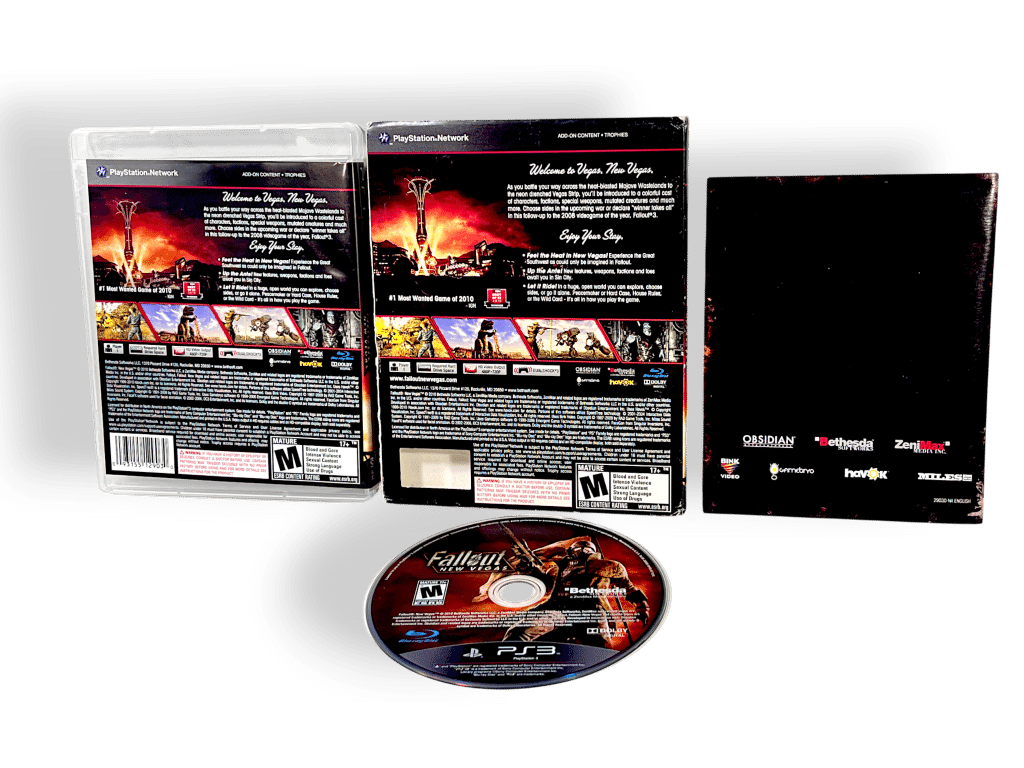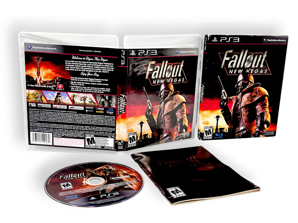 RARE FIND: GENUINE ALTERNATE US BOXED COLLECTOR’S EDITION in Excellent Condition & 100% complete with contents: Fallout New Vegas (Fall Out New Vegas) for SONY PlayStation 3 / PS3. This preowned game is in pristine condition, and comes complete with case + cover + manual / booklet + game disc + COLLECTOR’S BOX / CARDBOARD DISPLAY SLEEVE. Each of the internal contents are immaculate, and the cardboard box has some pictured light shelf-ware consistent with age only. Overall, a tidy and complete collector’s box set. Refer photographs.
