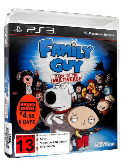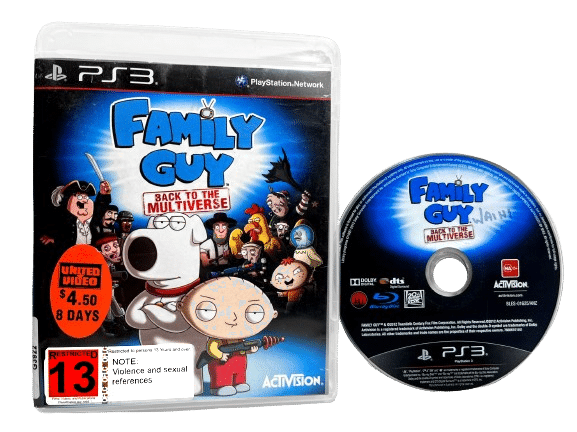 Rare and Collectible PS3 Game: Family Guy: Back to the Multiverse for SONY PlayStation 3 / PS3. This preowned game disc is in excellent condition and includes pictured case + cover.