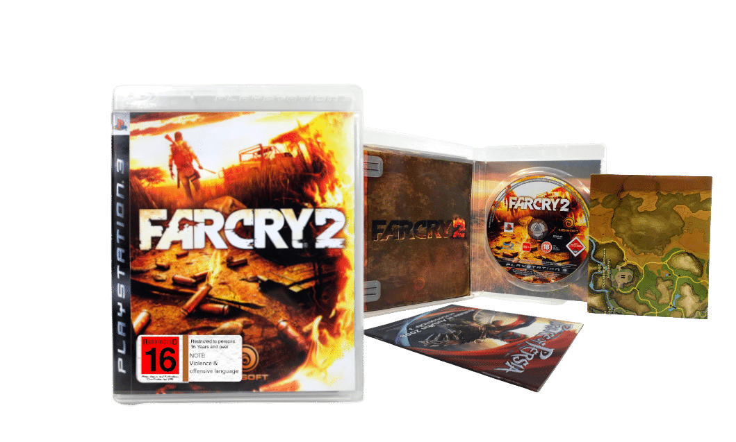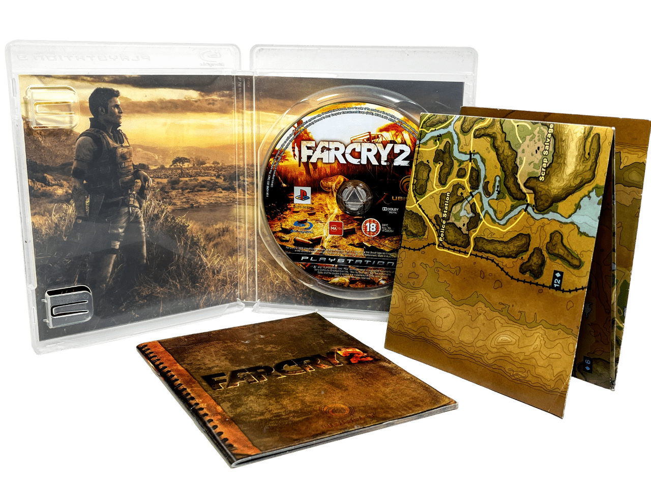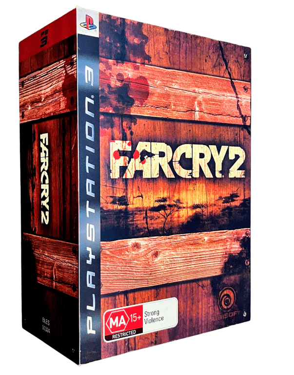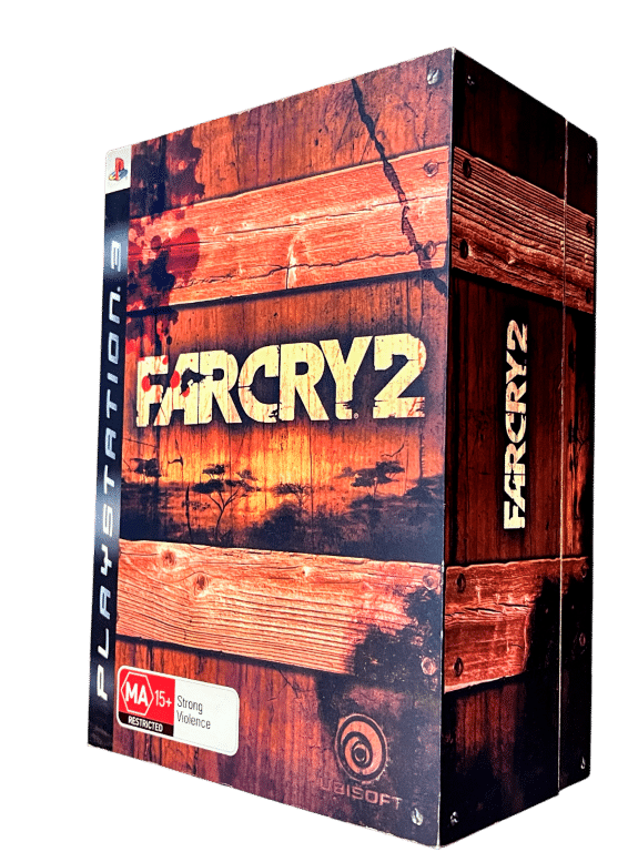 RARE FIND: Special Limited BIG BOX COLLECTOR’S EDITION: FARCRY 2 COLLECTOR’S BOX SET for SONY PlayStation 3 / PS3. This preowned authentic Limited Boxed Release is in Excellent Condition – all inner contents superb.