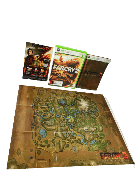 RARE FIND: Mint Condition & 100% Complete with ALL Contents, including BOTH Manual / Booklet AND Poster / Map: FAR CRY 2 for Xbox 360. This preowned game is in Pristine Condition and comes complete with pictured case + cover + manual / booklet + poster / MAP, and game disc. A very tidy and complete collector’s item.