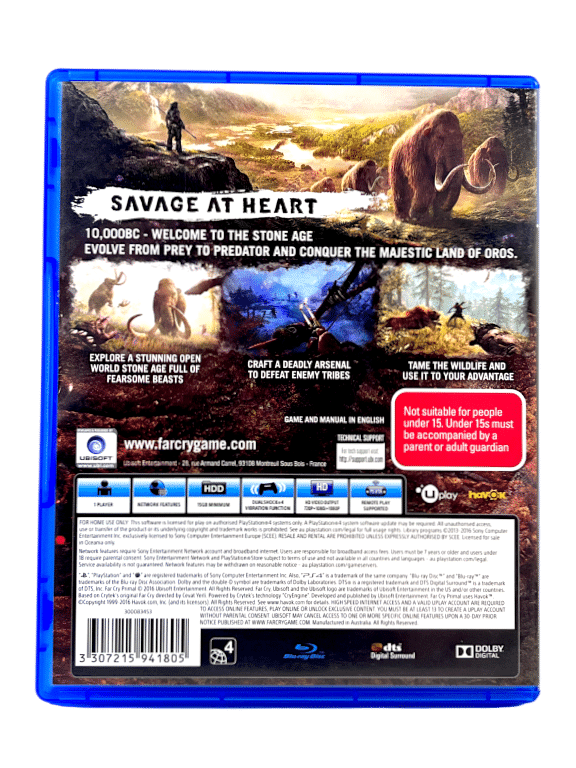 Rare authentic base print in mint condition & 100% complete with contents: FAR CRY PRIMAL / FarCry Primal for SONY PlayStation 4 / PS4. This preowned game is in superb condition and comes complete with case, authentic standard edition cover (without the common “Special Edition” embedded in the cover art), manual / booklet, and game disc.