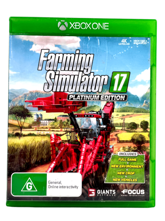 Rare Farming Simulator game FARMING SIMULATOR 17 / Farming Simulator ’17 / Farming Simulator 2017 for Xbox One. This preowned game is a GENUINE NEW ZEALAND RELEASE with the signature “G” classification embedded in the cover art. The disc is in excellent condition and includes pictured case + cover. Case is tidy. Paper cover has some paper creasing, but this is a purely cosmetic imperfection, and the game disc inside is superb. This game includes the FULL FARMING SIMULATOR 17 GAME ON THE DISC, without any promotional paper vouchers.