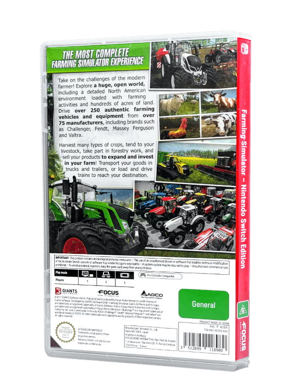 The Rare Nintendo Switch Launch Farming Simulator game in excellent condition %100% complete with contents: case + cover + carded insert + game cartridge. Preowned and in superb condition.