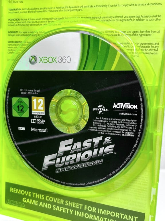Excellent Condition & 100% complete with contents: FAST & FURIOUS SHOWDOWN for XBox 360. This preowned game is in superb condition and comes complete with case + cover + game disc.