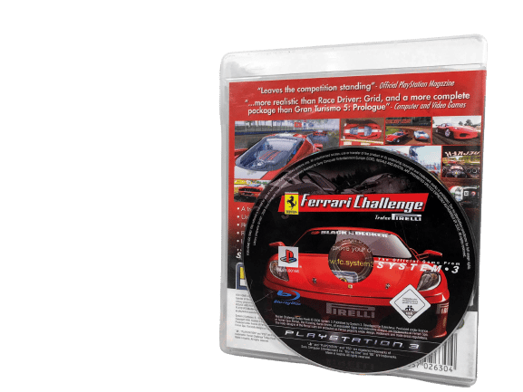 RARE & collectible Driving & Racing Game from SYSTEM 3 in Excellent condition & 100% complete with manual: FERRARI CHALLENGE: Trofeo Firelli for SONY PlayStation 3. This preowned game comes complete with case, cover, manual / booklet, and game disc. A tidy and complete collector’s item.