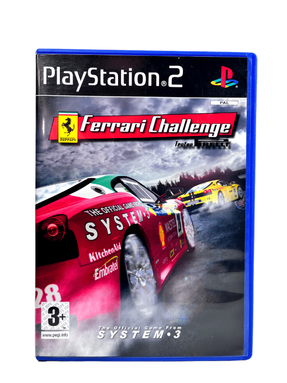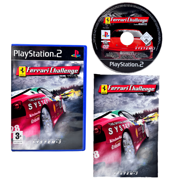 RARE & collectible Driving & Racing Game from SYSTEM 3 in Excellent condition & 100% complete with manual: FERRARI CHALLENGE: Trofeo Firelli for SONY PlayStation 2 / PS2. This preowned game is in superb condition and comes complete with case, cover, manual / booklet, and game disc. Inner contents are As New. A tidy and complete collector’s item.