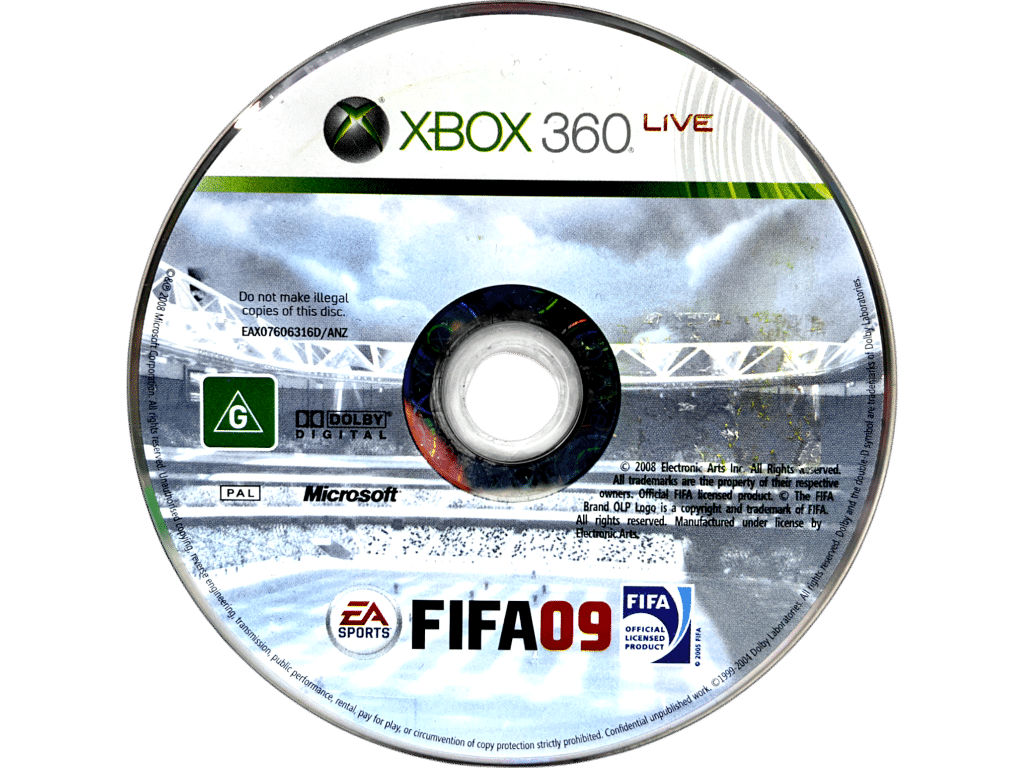 FIFA ’09 / FIFA 2K9 / FIFA 2009 for Xbox 360. This preowned game is in good condition with light scratches only, and includes case + promo card + game disc. NOTE: when stock reduces to 1 the Manual has slight water damage.