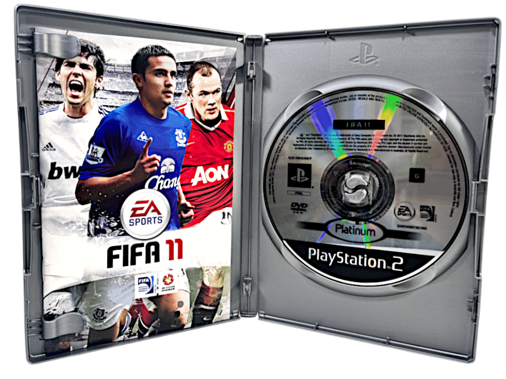 GENUINE PLATINUM EDITION in excellent condition & 100% complete with contents: FIFA 11 / Fifa ’11 / Fifa 2K11 / Fifa 2011 for SONY PlayStation 2 / PS2. This preowned game is in superb condition with only mild disc surface imperfections, and comes complete wih authentic Platinum Edition case + cover + manual / booklet + game disc. Overall, a tidy and complete collector’s item.