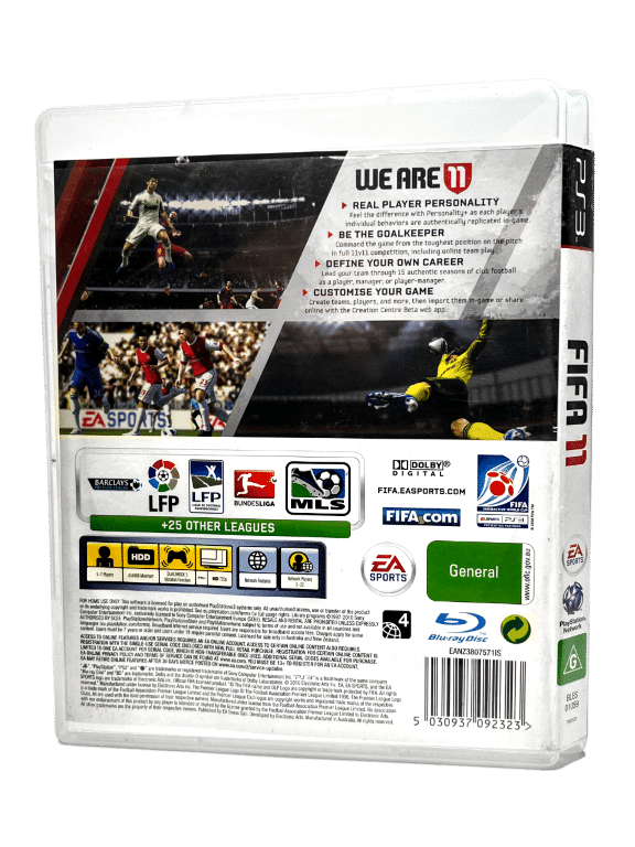 Good condition & 100% complete with contents: Fifa 11 FIFA ’11 / Fifa 2011 for SONY PlayStation 3 / PS3. This preowned game is in good condition and includes case, cover, manual / booklet and game disc. Case has some minor plastic damage, but this is cosmetic only and does not affect its functionality. Each of the internal contents are in very tidy condition. NOTE: when stock reduces to 1 the manual is no longer included.