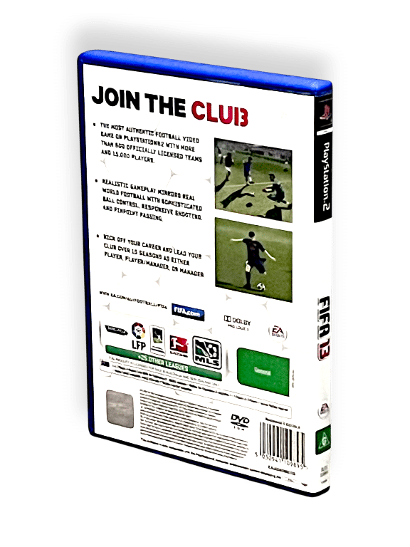 MINT CONDITION BUT NO MANUAL INCLUDED: FIFA ’13 for SONY PlayStation 2 / PS2. This preowned game is in Mint condition and includes case + cover + game disc BUT NO MANUAL INCLUDED.