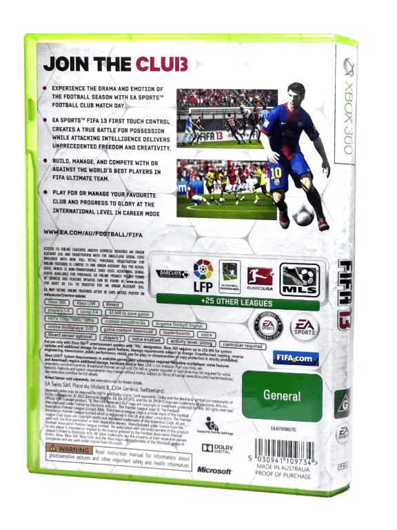 FIFA 13 delivers the largest and deepest feature set in the history of the franchise. Five game-changing innovations create a true battle for possession, deliver freedom and creativity in attack, and capture all the drama and unpredictability of real-world football.Key features include Attacking Intelligence, FIFA 13 Complete Dribbling, FIFA 13 1st Touch Control, Tactical Free Kicks, refined fundamental, the expansion of the player impact engine and complete authenticity with over 500 officially licensed clubs and more than 15,000 players.Attacking Intelligence— All-new positioning intelligence wires attacking players with the intelligence to analyze plays, and to position themselves to create new attacking opportunities