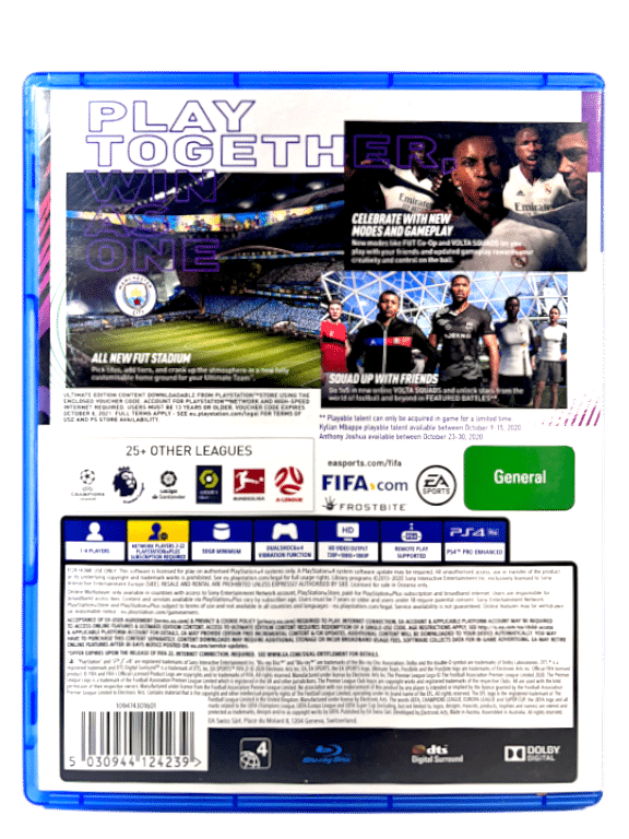 Win as one in EA SPORTSâ„¢ FIFA 21 with new ways to team up and express yourself on the street and in the stadium. Powered by Frostbiteâ„¢, FIFA 21 raises the game with fresh features that let you enjoy even bigger victories together in VOLTA FOOTBALL and FIFA Ultimate Teamâ„¢, feel a new level of gameplay realism that rewards you for your creativity and control, manage every moment in Career Mode, and experience unrivalled authenticity that gives you the most true-to-life experience of The World’s Game.