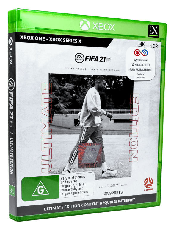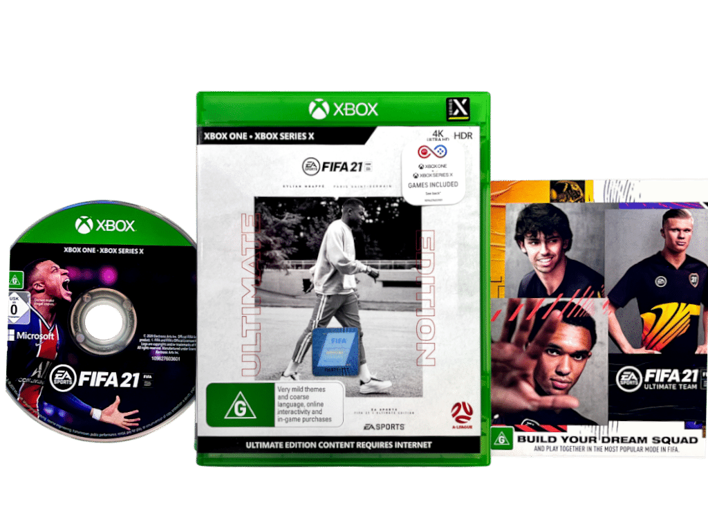 Rare Authentic ULTIMATE EDITION in MINT condition & 100% complete with contents: FIFA 21 ULTIMATE EDITION for XBox One. This preowned game is in PRISTINE condition – presents As New – complete with case + cover + ONE (1) x carded insert (the white voucher card to the viewer’s right of the game case is NOT included) + game disc. A very tidy and complete collector’s item.
