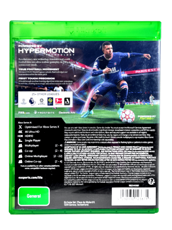 Mint condition & 100% complete with contents: FIFA 22 for XBox Series X. This preowned game is in superb condition and complete with case + cover + promo cards + game disc.