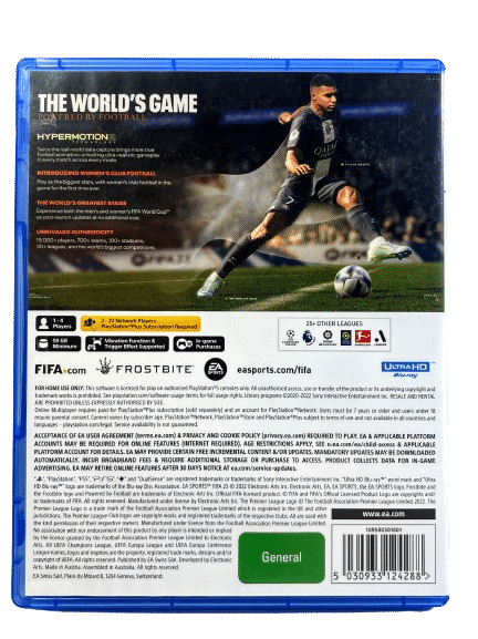 With advances in HyperMotion2 Technology driven by twice as much real-world motion capture helping to create more true football animation than ever before in every match. Play the biggest tournaments in football with both the men’s and women’s FIFA World Cupâ„¢ coming to FIFA 23 during the season, play as women’s club teams – powered by dedicated HyperMotion2 animation – for the first time ever, plus enjoy cross-play features that make it easier to play against friends. Enjoy a new way to play and build your dream squad in FIFA Ultimate Teamâ„¢ with FUT Moments and a revamped Chemistry system, or live out your football dreams in Career Mode as you define your personality as a player and manage as some of football’s most famous names. In VOLTA FOOTBALL and Pro Clubs, bring more personality to the pitch with new levels of customisation and enhanced street and stadium gameplay. However you play, experience The World’s Game with over 19,000 players, 700+ teams, 100+ stadiums, and over 30 leagues – including the UEFA Champions League, Premier League, new Barclays FA Women’s Super League and France D1 Arkema with unrivalled authenticity in FIFA 23.