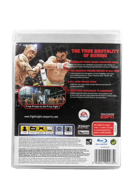Fight Night Champion takes the boxing experience one giant step forward by delivering an experience never before seen in an EA SPORTS video game. Fighting as contender Andre Bishop in a story-based Champion mode or as one of more than 50 legends and champions, battle your way to the top in the boxing revolution that builds upon the best-in-class gameplay and physics engine of the critically acclaimed Fight Night Round 4. Immerse yourself in a world of brutality, uncertainty, betrayal, and redemption with Fight Night Champion.