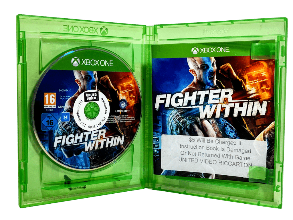 Good Condition & 100% Complete with Contents: FIGHTER WITHIN for Xbox One. This preowned game disc is in excellent condition and comes complete with pictured case, cover, manual / booklet, and game disc. Case has some mild laminate plastic wear, but this is a minor imperfection, and the contents inside are very tidy.