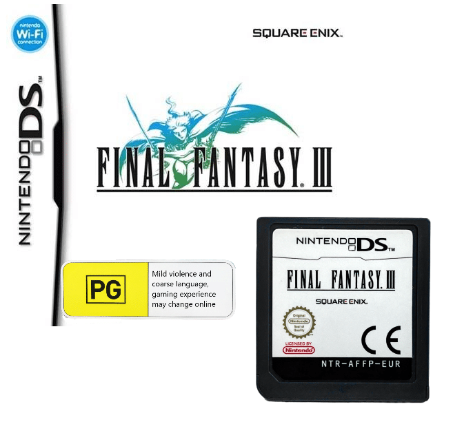 Final Fantasy III for Nintendo DS. This preowned game cartridge is in Excellent Condition. Cartridge only. Case NOT included, but cartridge will come inside a miniature plastic protective case.