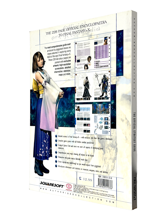 Official Squaresoft / Piggyback strategy guide for Final Fantasy X. Features walkthroughs, maps, character builds, and endgame content. A premium collectible for JRPG fans and PlayStation 2 collectors, valued both for practical reference and as a display piece alongside the iconic title.