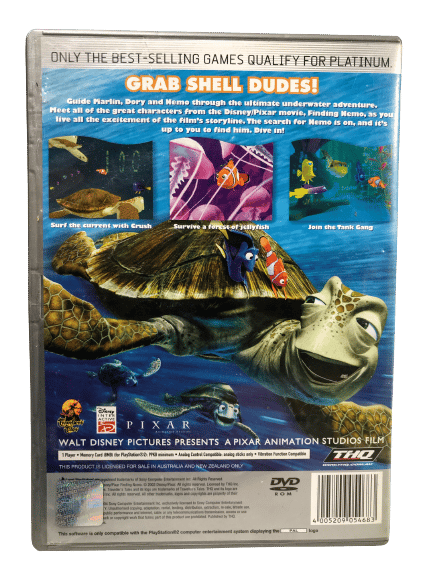 Good condition & 100% complete with contents: DISNEY PIXAR – Finding Nemo The Video Game for SONY PlayStation 2 / PS2. This preowned game comes complete with case, cover, manual / booklet, and game disc. Disc has cosmetic scratches that do not affect gameplay.
