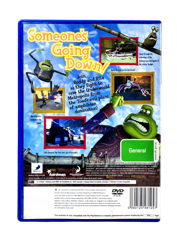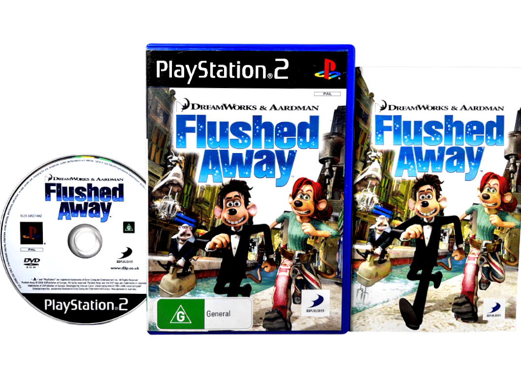 Excellent condition & 100% complete with contents: FLUSHED AWAY the video game for SONY PlayStation 2 / PS2. This preowned game is in superb condition and comes complete with case, cover, manual / booklet and game disc.