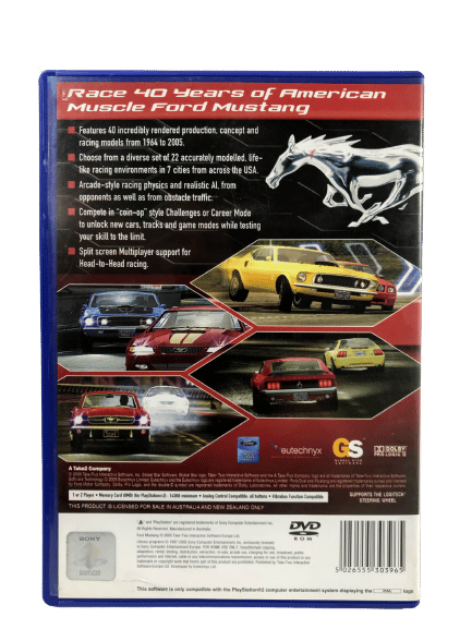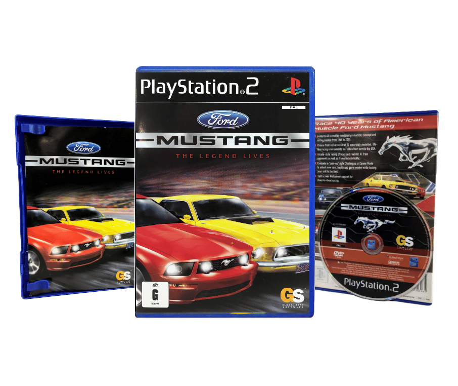 Excellent condition & 100% complete with contents: FORD MUSTANG The Legend Lives for SONY PlayStation 2 / PS2. This preowned game is in superb condition and comes complete with case + cover + manual / booklet + game disc. A small barcode sticker on the front cover, and the faintest of superficial markings and feather scratches on disc, but these are purely cosmetic imperfections.