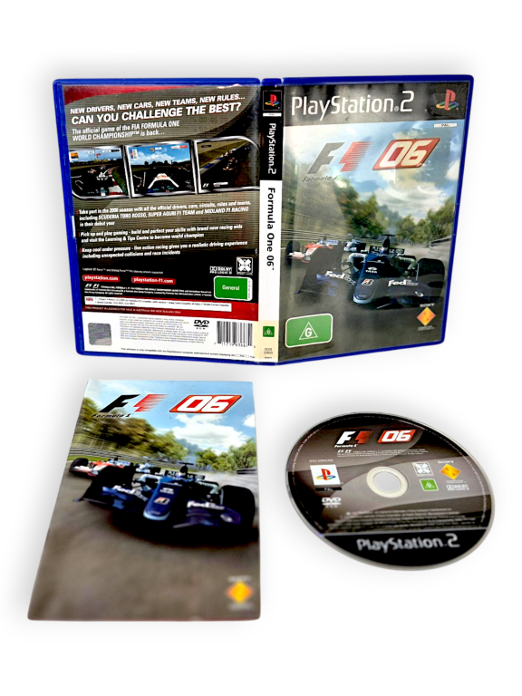 Formula One 06 (PS2 – Complete). This preowned game is in good condition and includes pictured contents. Mild disc surface imperfections only which do not hinder performance or gameplay in the slightest. Refer photographs.