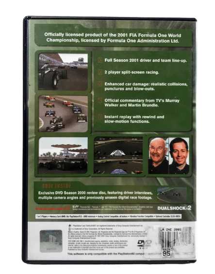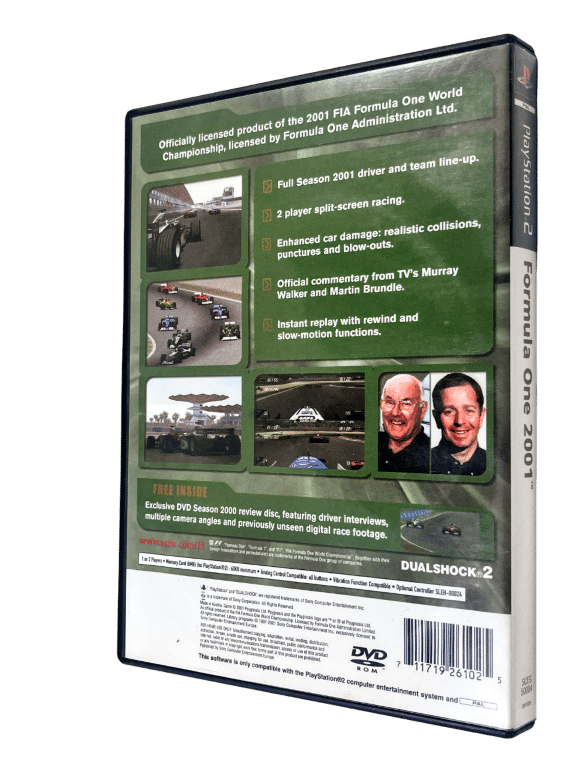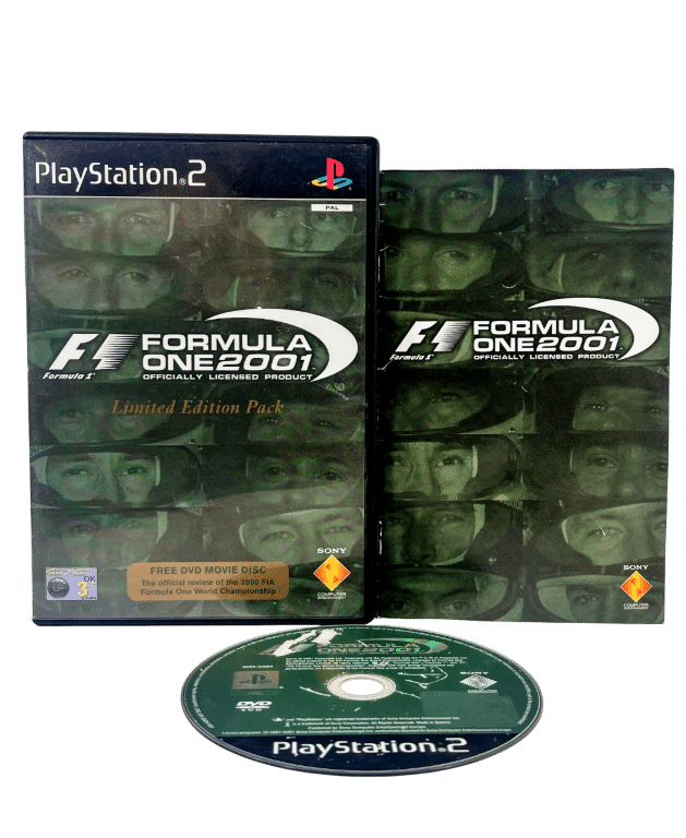 FORMULA ONE 2001 / FORMULA 1 2001 / F1 2001 LIMITED EDITION PACK for SONY PlayStation 2 / PS2. This preowned game comes complete with case + cover + manual / booklet + game disc. Case has some old price stickers which can be removed. Disc has some light superficial markings / cosmetic scratches, but these are very minor imperfections which do not affect game play in any way.