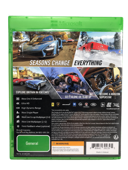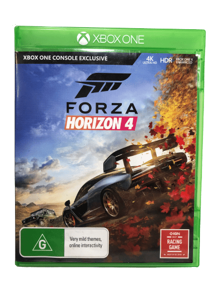 FORZA HORIZON 4 for Xbox One. This preowned game is in excellent condition and comes complete with case + cover + game disc.