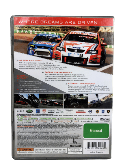 • It’s easy to go for a spin: “Forza Motorsport 3” redefines the racing genre. Simulation games can be too hard for some players. “Forza Motorsport 3” rises above the distinction between simulation and arcade games. Using a myriad of cutting-edge driving and gameplay assists such as auto-braking, gameplay rewind and auto-tuning, “Forza Motorsport 3” delivers an experience where everyone can have fun behind the wheel, regardless of your skill and dexterity. Whether you’re a newcomer or a seasoned racing game pro, “Forza Motorsport 3” caters to how you drive and evolves with you over time as your skills increase.