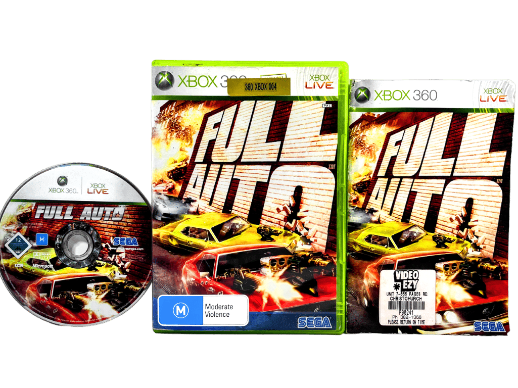 RARE FIND: good condition & 100% complete with contents: FULL AUTO for Xbox 360. This preowned game disc is in excellent condition and comes complete with pictured case + cover + manual / booklet. Booklet has some light paper creasing, but the game disc is very tidy. Rare game.