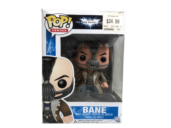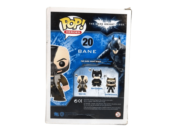 HIGH VALUE POP: Funko Pop! Batman The Dark Knight Rises: BANE (RARE – VAULTED). Preowned pop with some box wear as pictured. Pop is in excellent condition inside box.