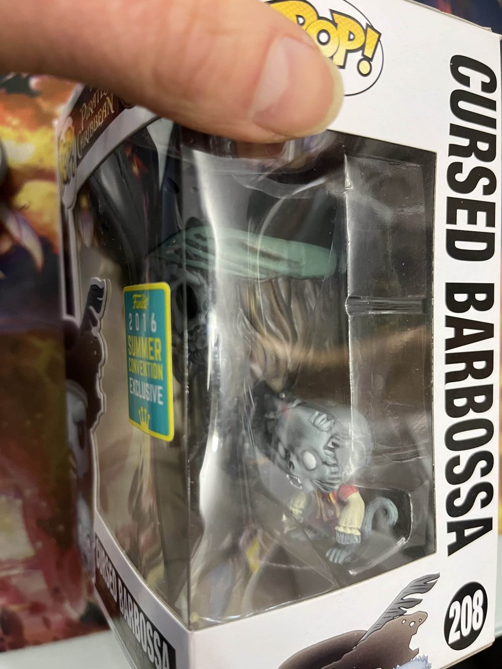 Funko Pop! Pirates of The Caribbean: Captain Barbossa w/ Monkey (Summer Convention 2018). Good condition with some slight wear to box on the side, see photo for reference