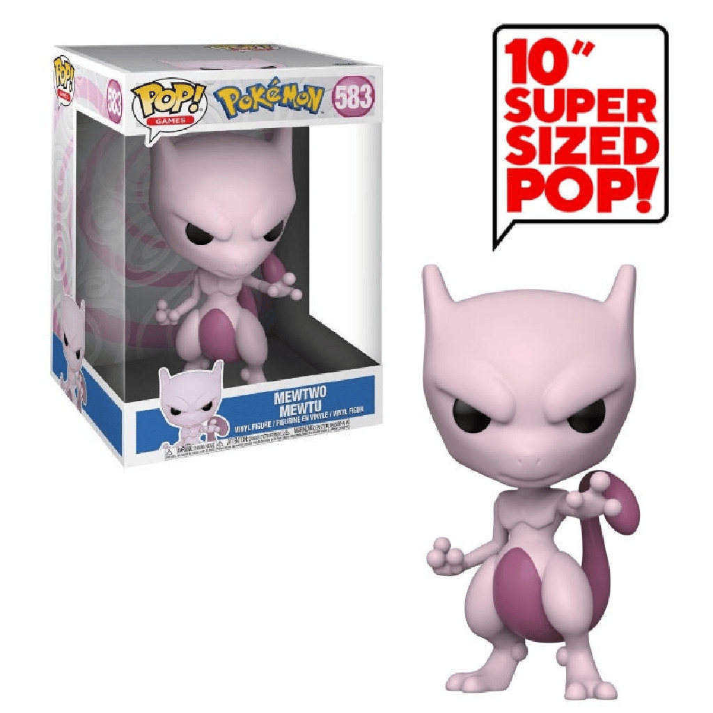 . Pokemon: Mewtwo – 10″ Super Sized Pop! Vinyl Figure. Excellent condition with some light shelf wear to box.