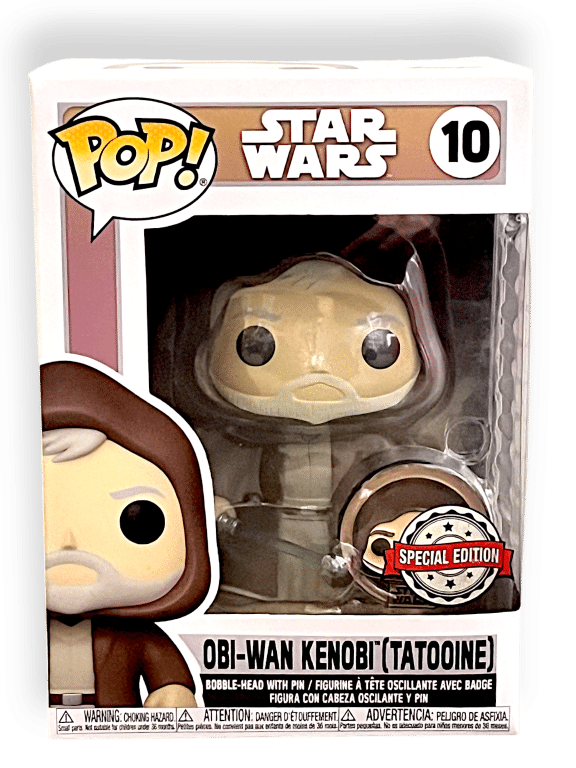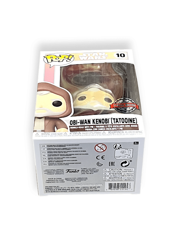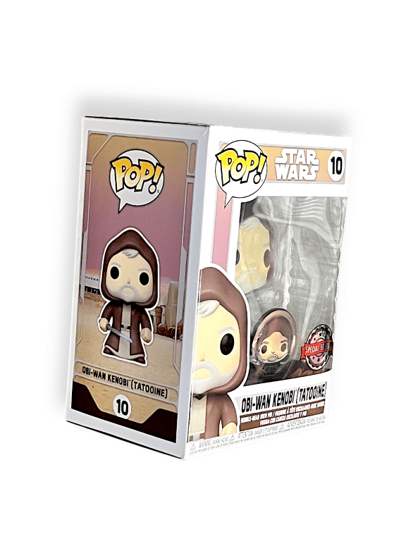 Funko Pop! Star Wars #10 – Obi-Wan Kenobi (Tatooine) Special Edition. This pre-owned Funko Pop is in good condition with some mild box wear pictured. Refer photographs.
