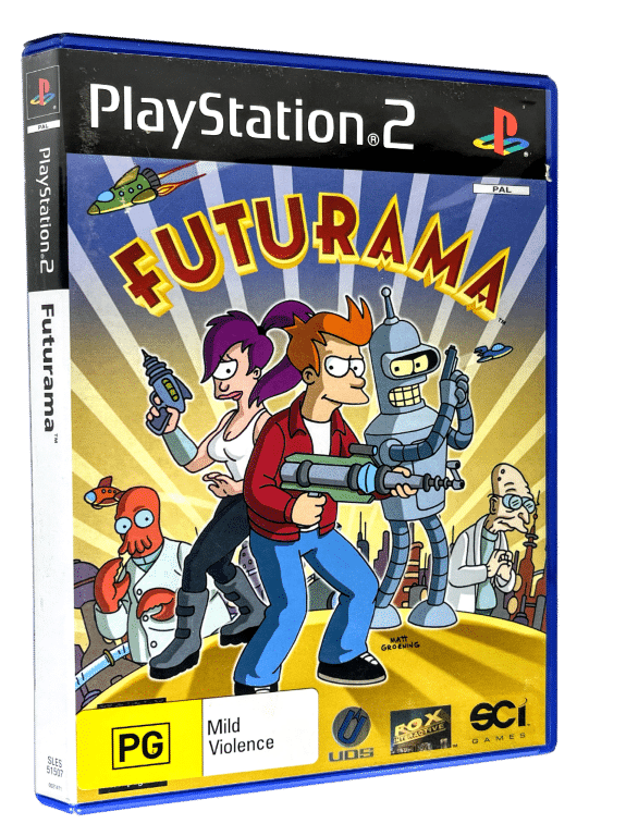 FUTURAMA The Video Game for SONY PlayStation 2 / PS2. This preowned game disc is in Excellent Condition – with each of the case + cover superb and the disc excellent with only the faintest of superficial markings / cosmetic scratches. Manual not included. A lovely collector’s item.