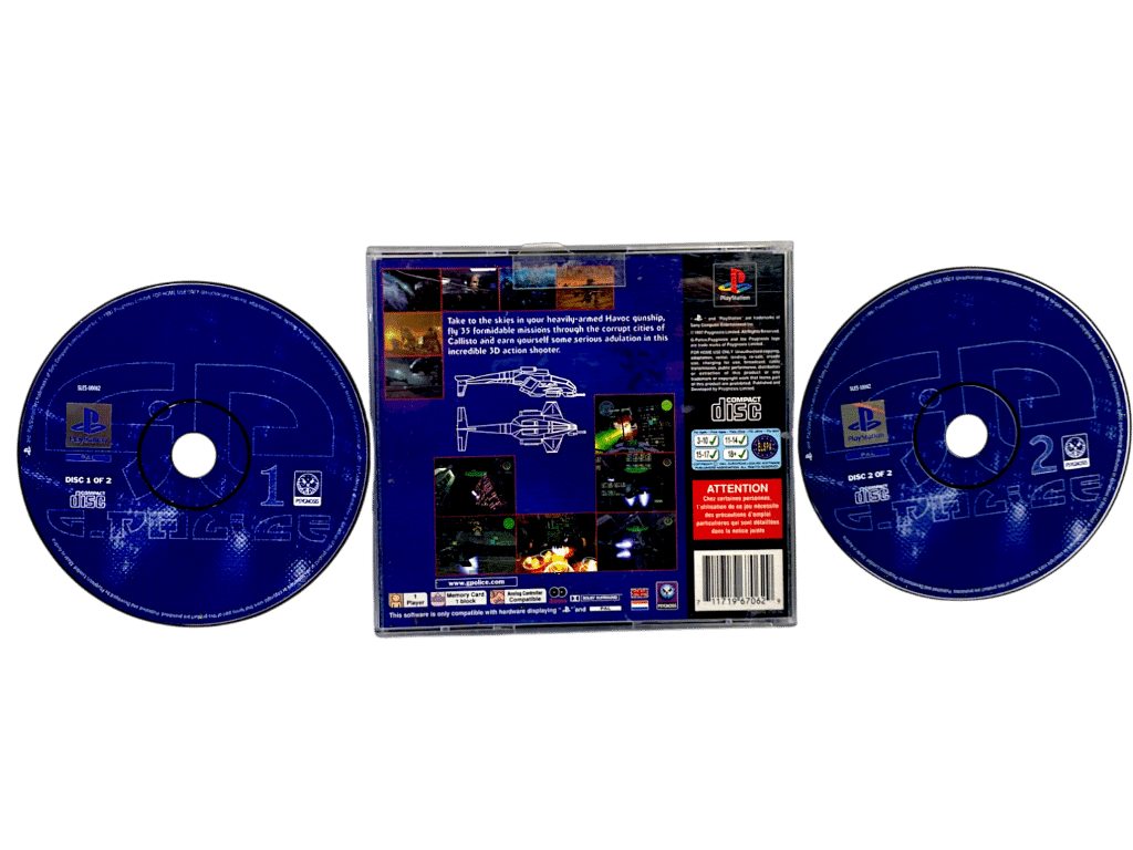 G-Police GPolice / G Police for SONY PlayStation 1 / PS1. This preowned PS1 game is in good condition and complete with original case + covers + booklet + game disc. Mild surface imperfections on the disc only. Refer photographs.