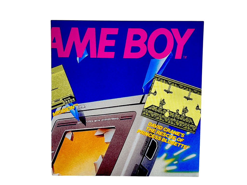 Original Nintendo Game Boy promotional leaflet highlighting the system’s portability and early game lineup. Featuring bold 90s-era design and screenshots, this flyer was used to market the Game Boy during its early lifecycle. A desirable collectible for Nintendo historians and fans of classic handheld advertising.