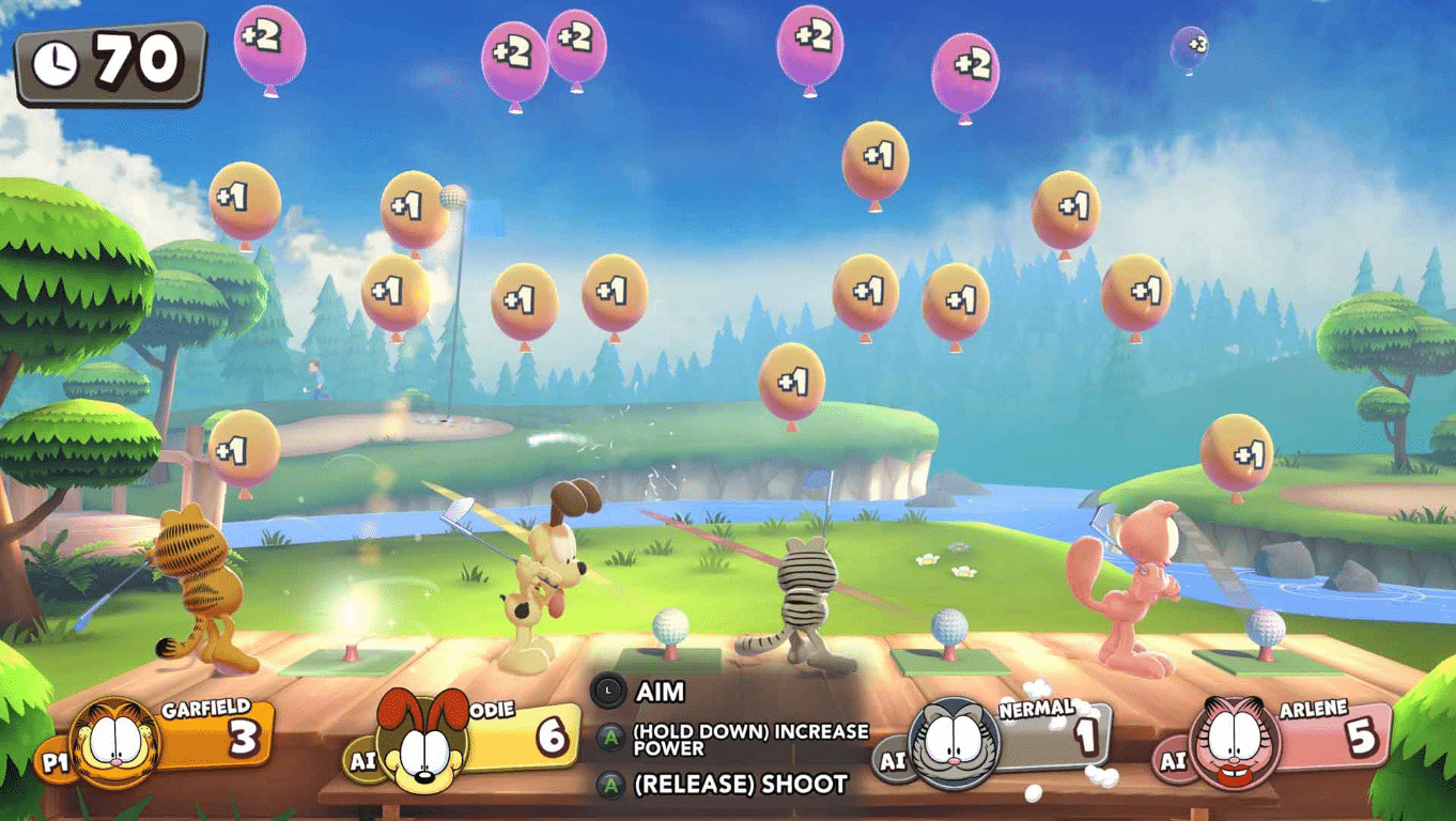 - Play as one of the 4 iconic characters from Jim Davis’ iconic comic: Garfield, Nermal, Arlene & Odie!