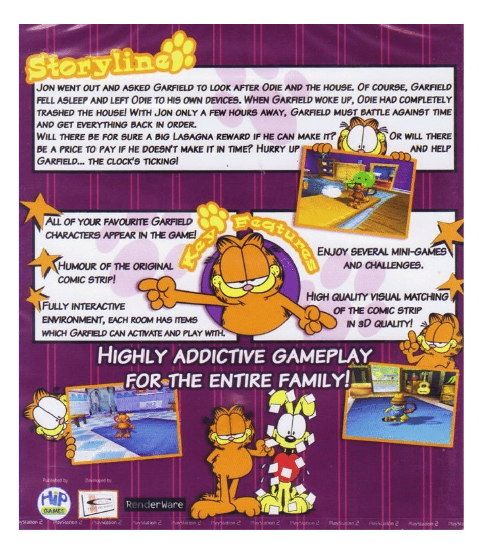 GARFIELD the official Video Game for SONY PlayStation 2 / PS2i. This rare preowned game disc is in Excellent Condition and comes inside an empty blank case. Please note that the original case is NOT included.