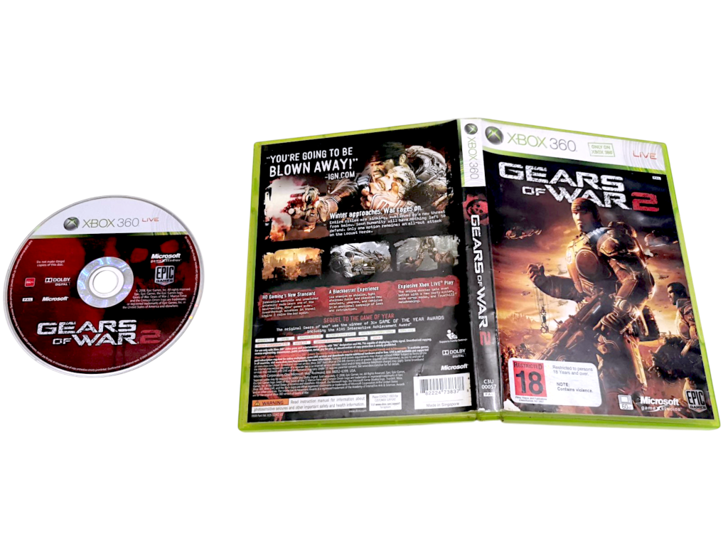 Gears of War 2 (Xbox 360). This pre-owned Xbox 360 game is in good condition with mild markings and very fine surface scratches only, which are purely cosmetic and do not hinder performance or gameplay in the slightestThis game includes the pictured contents; refer to the photographs.
