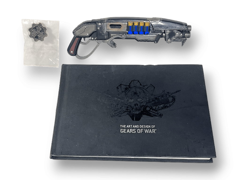 One of the world’s rarest Gears collectibles: the highly sought after Gears Of Wars 4 Xbox One Very Rare Pin / Badge which fetches a huge price on EBAY (refer slideshow). Also included are two more Gears of War Collectibles, one of these being the almost as rare miniature Gun Replica (refer photos). And of course we have included the hardcover artbook. The pin is AS NEW, as is the gun! The hardback artbook is preowned with signs of use. The pin alone would be a centrepiece in any gamer’s collection, with some added collectible firepower included for good measure. Refer photographs.