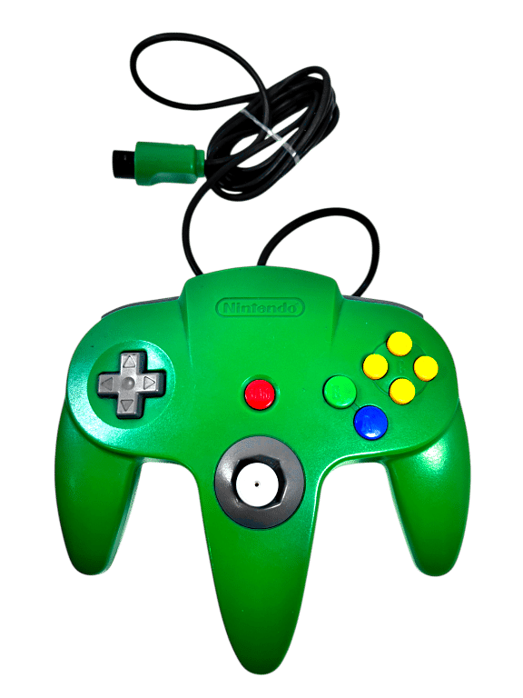 Official Nintendo 64 Controller N64 Controller GREEN. This preowned controller is in good condition as pictured. Analog is loose, but doesn’t affect functionality in any way.